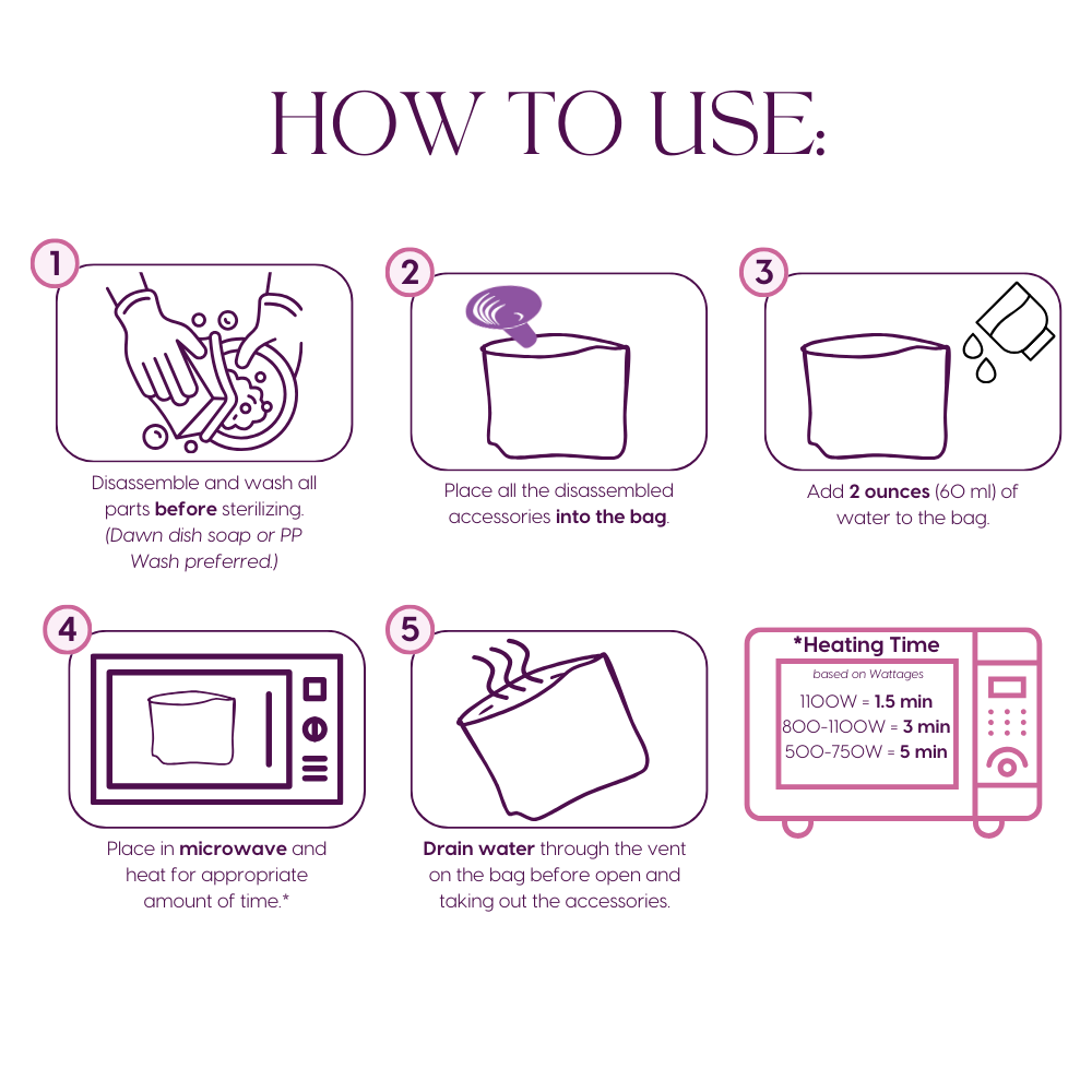 (Don’t worry, these instructions are also printed on each sterilizer bag!)
