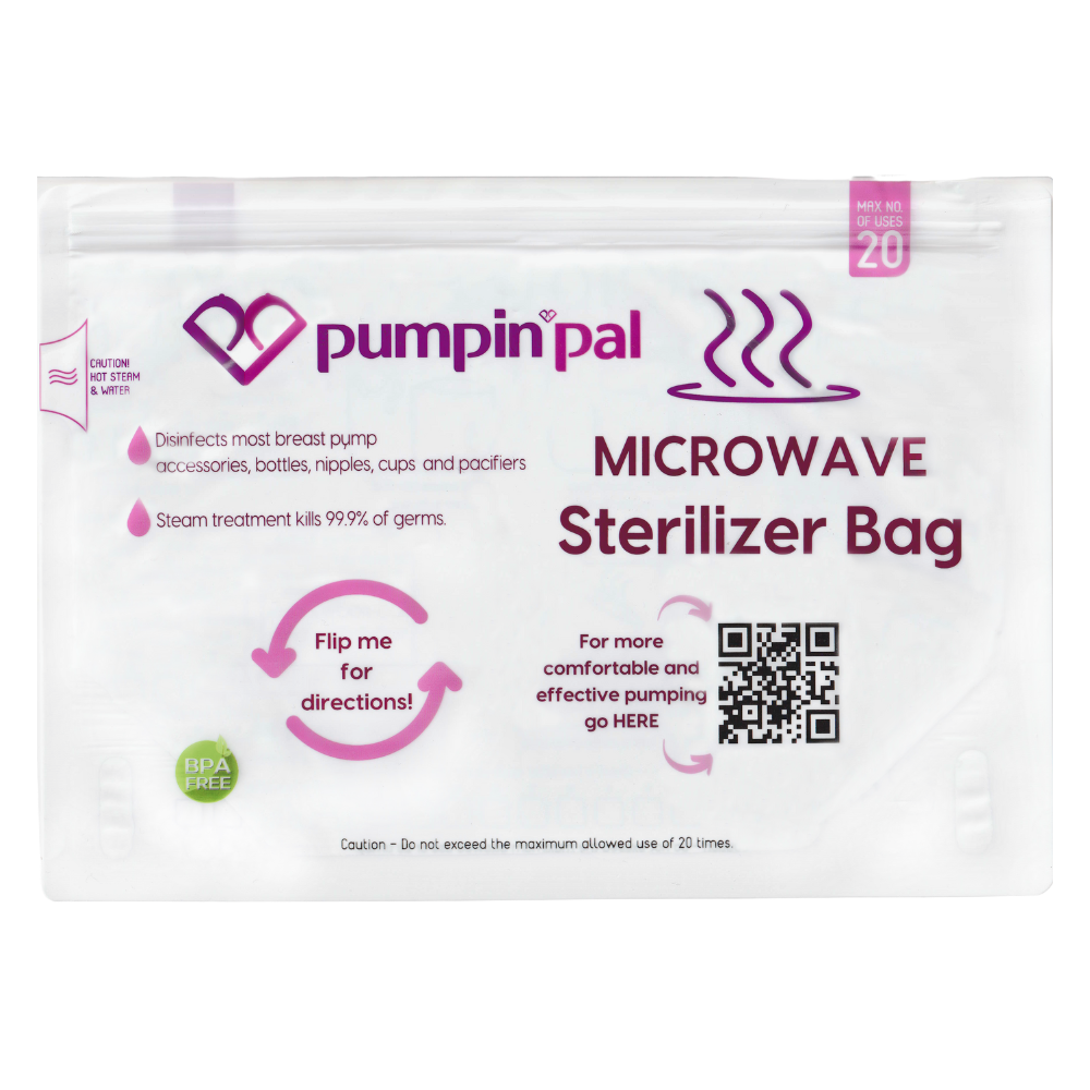 Elevate your sterilization routine with Pumpin’ Pal Microwave Sterilizer Steam Bags — created for the modern parent seeking efficiency without compromising on safety! Each bag can be reused up to 20 times, and will turn the task of sanitizing your baby’s bottles, accessories, and pump parts into a hassle-free experience.